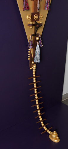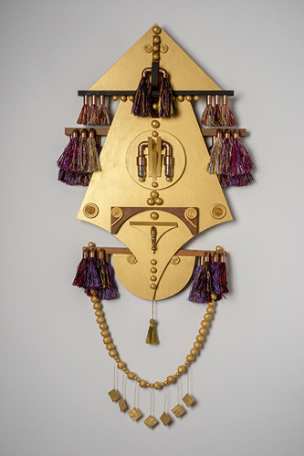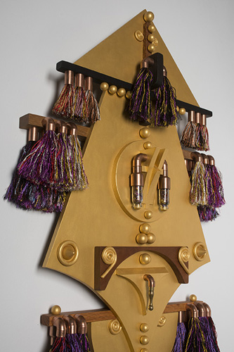 kite grace, 2013, 50.5 x 25 x 5, mdf board, oak, cherry, wenge, poplar, lacewood, copper, brass, glass, ceramic, cotton fiber, mulberry fiber, cotton thread, metallic floss, acrylic